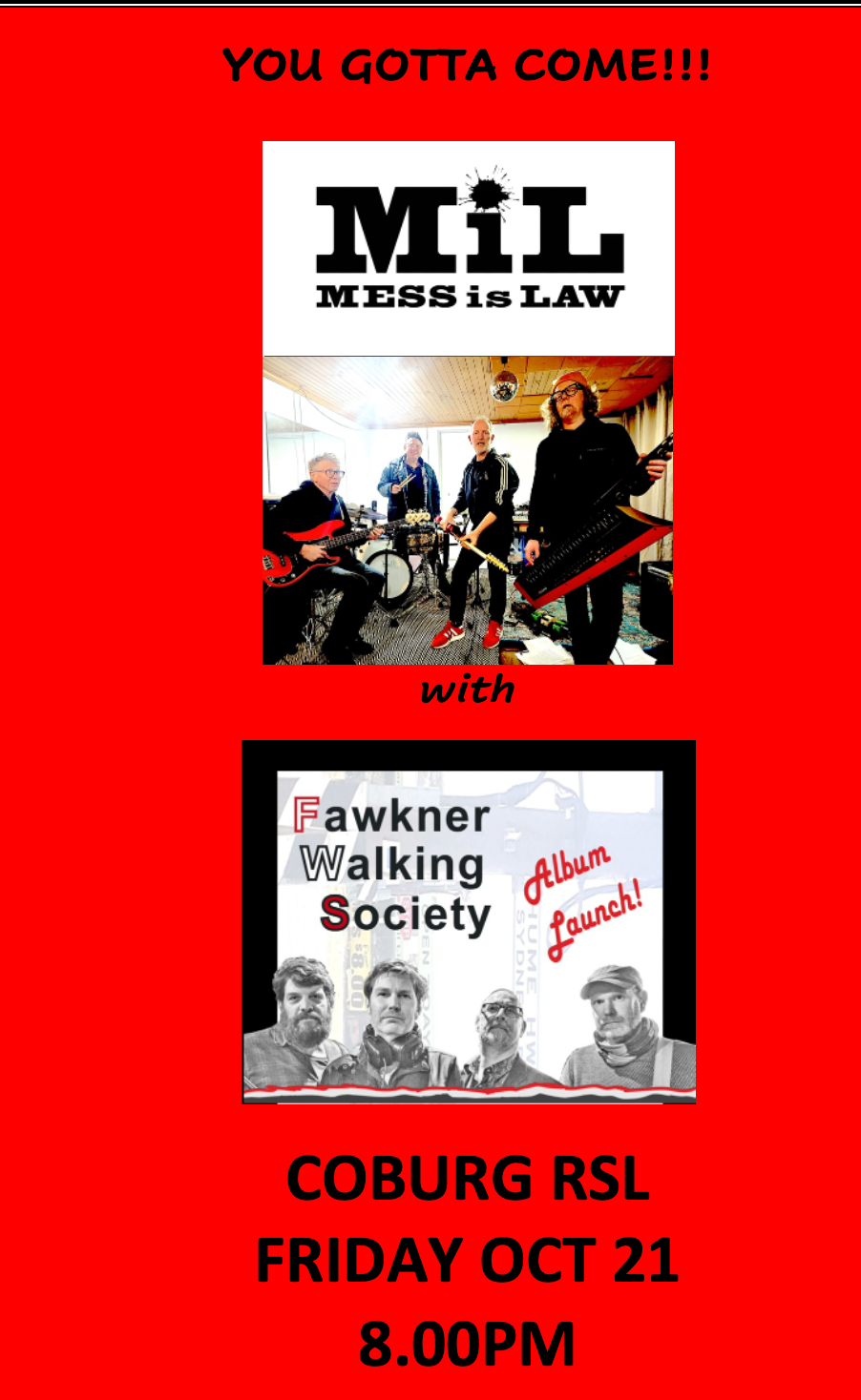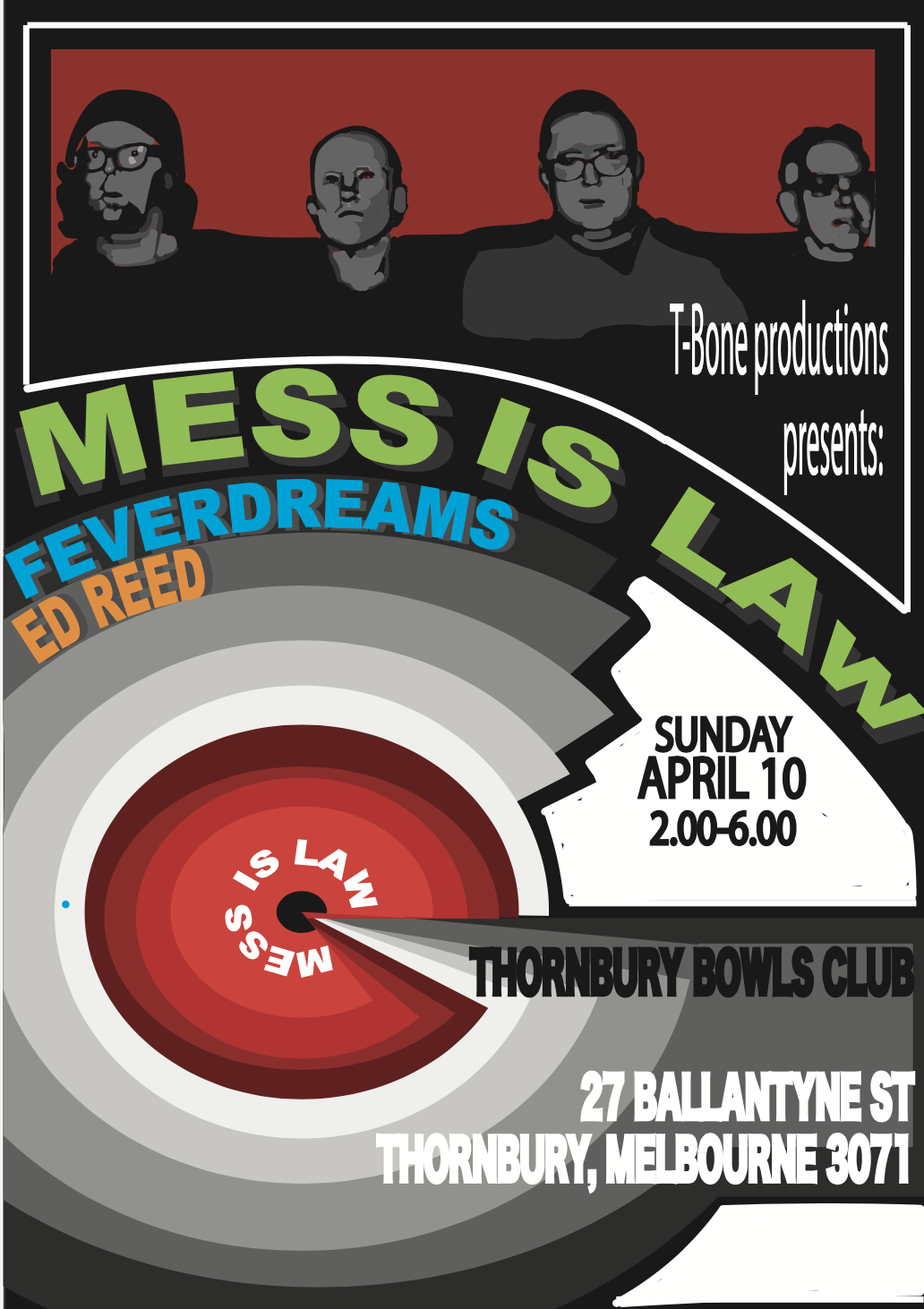 MESS IS LAW is a new Melbourne based band: Raw guitar grooves, sweeping keyboards, dynamic drums with solid-as bass.